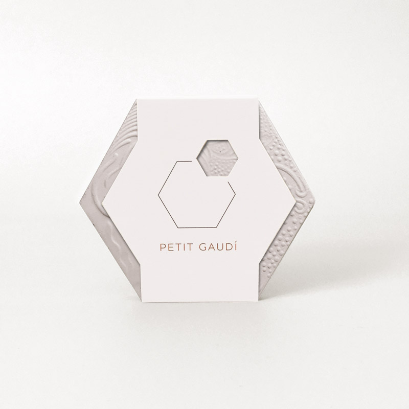 Cada unidad producida del Petit Gaudí ha sido trabajada a mano por un artesano de Mosaics Martí según la técnica original del 1904. La pieza incluye un sello de origen, y un packaging conceptual y minimalista.